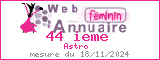 NEW - Afficher sur votre site Feminins votre position dans Annuaire Web France et booster votre classement, chaque visiteur unique sur votre site Feminin vous rapportant un point suppléméntaire, et montez ainsi rapidement dans le classement global.
