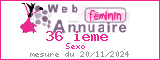 NEW - Afficher sur votre site Feminins votre position dans Annuaire Web France et booster votre classement, chaque visiteur unique sur votre site Feminin vous rapportant un point suppléméntaire, et montez ainsi rapidement dans le classement global.