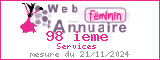 NEW - Afficher sur votre site Feminins votre position dans Annuaire Web France et booster votre classement, chaque visiteur unique sur votre site Feminin vous rapportant un point suppléméntaire, et montez ainsi rapidement dans le classement global.