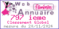 NEW - Afficher sur votre site Feminins votre position dans Annuaire Web France et booster votre classement, chaque visiteur unique sur votre site Feminin vous rapportant un point suppléméntaire, et montez ainsi rapidement dans le classement global.